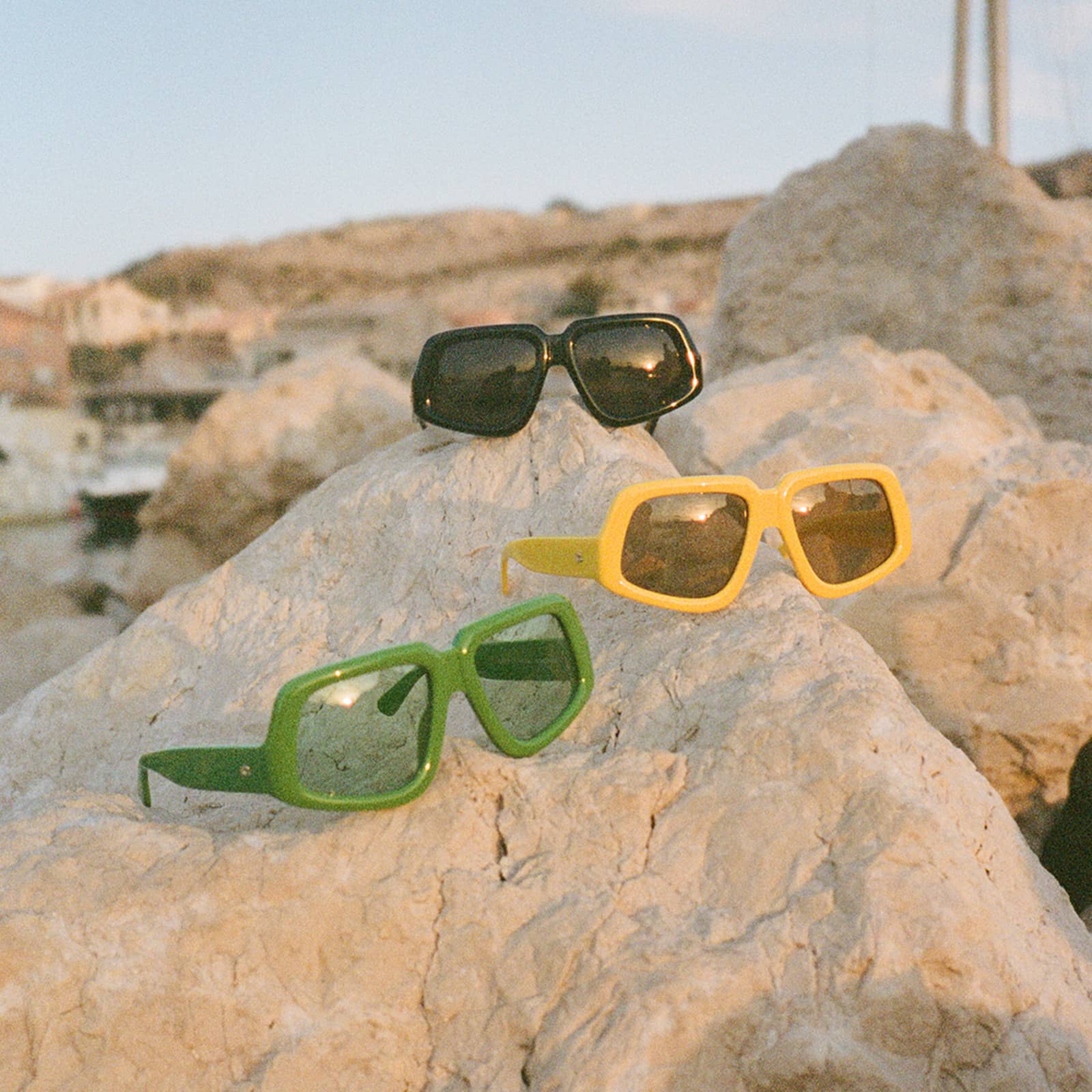 "The Bugz” is an oversized silhouette sculpted from extra-thick bioacetate. It features signature Aminé detailing & a custom CLBN banana case.