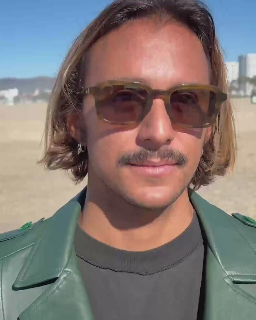 Handcrafted bioacetate frames—biodegradable, plant-based, earth-friendlier. Rx-ready.